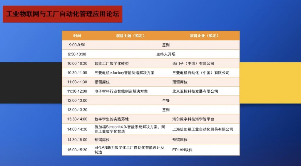 工业物联网与工厂自动化管理应用论坛(10月13日),呼应5G、物联网、数字孪生等为制造业转型升级提供新动能这一产业趋势,探讨创新解决方案。