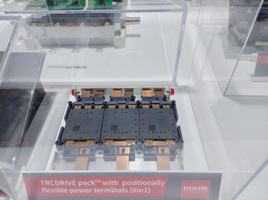 在应用案例展区,集中展示了罗姆功率器件在终端产品中的成功实践。多家合作伙伴,如悉智科技、西诚、海姆希科、赛米控丹佛斯等,展示了采用罗姆碳化硅和IGBT芯片的车载逆变器模块、车载空调压缩机模块和PTC加热模块。这些模块采用了DCM、HPD等先进封装技术,电流能力最高可达近600安培,是电动汽车的“心脏”——电驱动系统的核心。特别是海姆希科的模块,甚至将电容集成于模块内部,进一步简化了客户的外围电路设计。这些案例充分证明了罗姆从芯片到模块,再到系统应用的全产业链支持能力。