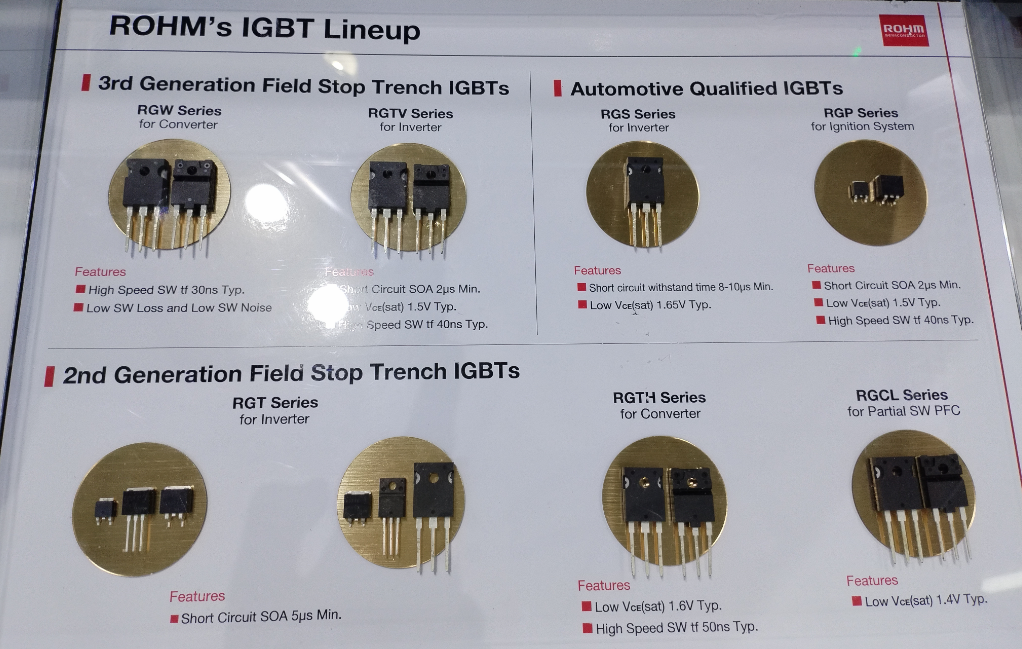 在IGBT方面,RGA系列展现了强大的性能,其短路耐受能力达到了业界领先的10微秒(Tj=25℃时),并拥有低至1.6V的饱和压降,是电动压缩机、加热器和工业逆变器的理想选择。除了标准的3引脚封装,罗姆还提供了4引脚封装版本,能进一步降低开关损耗。