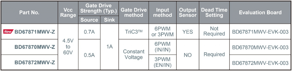 全球知名半导体制造商ROHM(总部位于日本京都市)今日宣布,推出适用于中等耐压系统(12V~48V系统)的采用“TriC3™”技术的三相无刷直流电机驱动器IC“BD67871MWV-Z”。通过配备ROHM自有的驱动逻辑,该电机驱动器IC成功地在降低FET发热量的同时实现了低EMI*1特性,而这两项之间存在此消彼长的关系,通常很难同时兼顾。